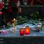 К знаку постоянно подходят люди. Они несут цветы и свечи. Цветы также возлагают к стеле Одессы.