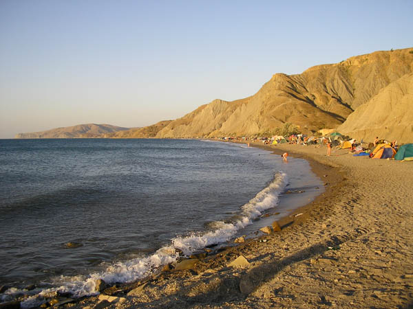 Надо сесть на любой автобус, который будет проезжать поселок Щебетовка, находящийся между Судаком и Феодосией, недалеко от Коктыбели. От Щебетовки надо добраться автобусом до поселка Курортное и выйти на берег. И далее направо по берегу идти до палаточного городка примерно минут 30.
