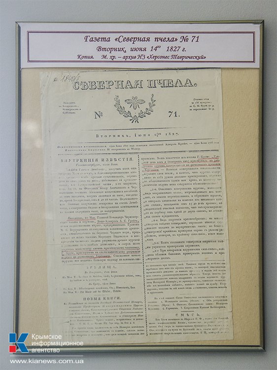 Еще одной выставкой порадовали научные сотрудники заповедника. Экспозиция «И не предам Херсонеса. История, люди, находки» рассказывает о музейной жизни – с момента первого дня раскопок 19 ноября 1827 года. Кроме прочих экспонатов, на выставке представлено письменное свидетельство о начале исследований в Херсонесе в виде копии статьи в петербургской газете «Северная пчела» и уникальные архивные документы по истории исследования Херсонеса.