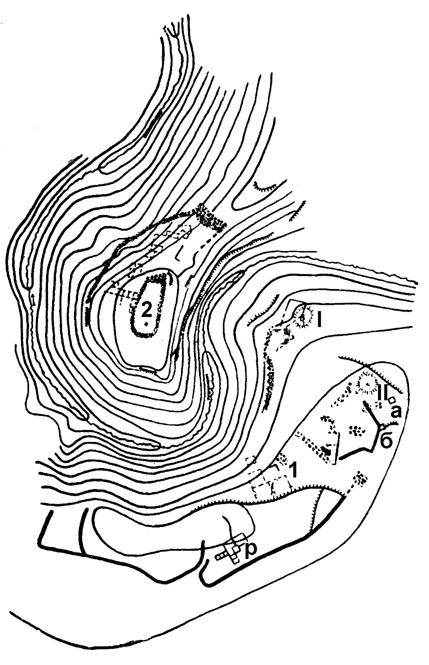 Внизу, у подножия, на открытом незащищенном месте находилось селище, где шла обычная мирная жизнь: строили дома, сеяли и убирали хлеб, пасли стада, обжигали глиняную посуду, шили одежду. В момент опасности все население поселка бросало свои дома и укр ывалось в убежище.