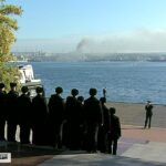 По данным источника в Министерстве обороны России, возгорание произошло в кормовом отсеке корабля в 5.00. К месту происшествия в течение нескольких минут прибыли бригады спасателей. В тушении были задействованы три противопожарных катера.
