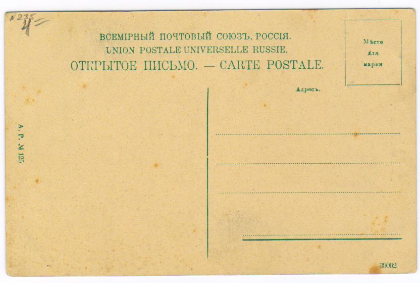 По дороге к Качи-Кале скала «Вай Бай-Анам». Крым. Всемирный почтовый союз. Россия. Оборотная сторона. №125.