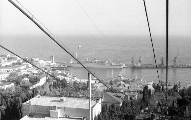 Вид с канатной дороги на порт. В порту стоит, кажется, «Адмирал Нахимов».
