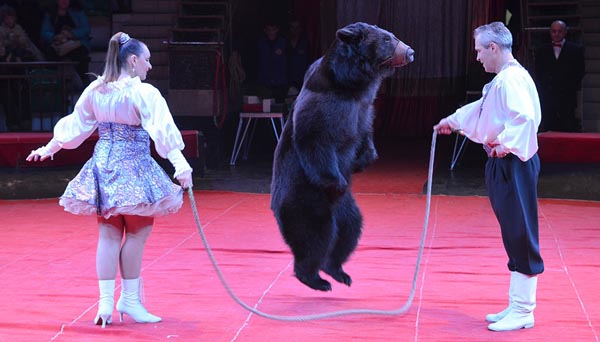 Москвичи представили свою новую программу. Она включает выступления акробатов, гимнастов, силачей, иллюзионистов, клоунов. В группе животных заявлены дрессированные собаки, медведи, лошади, верблюды.