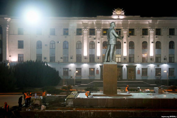 В понедельник вечером, 9 марта, рабочие убрали забор вокруг памятника Ленину на одноименной площади в Симферополе, а также скинули брезент с обновленного монумента.