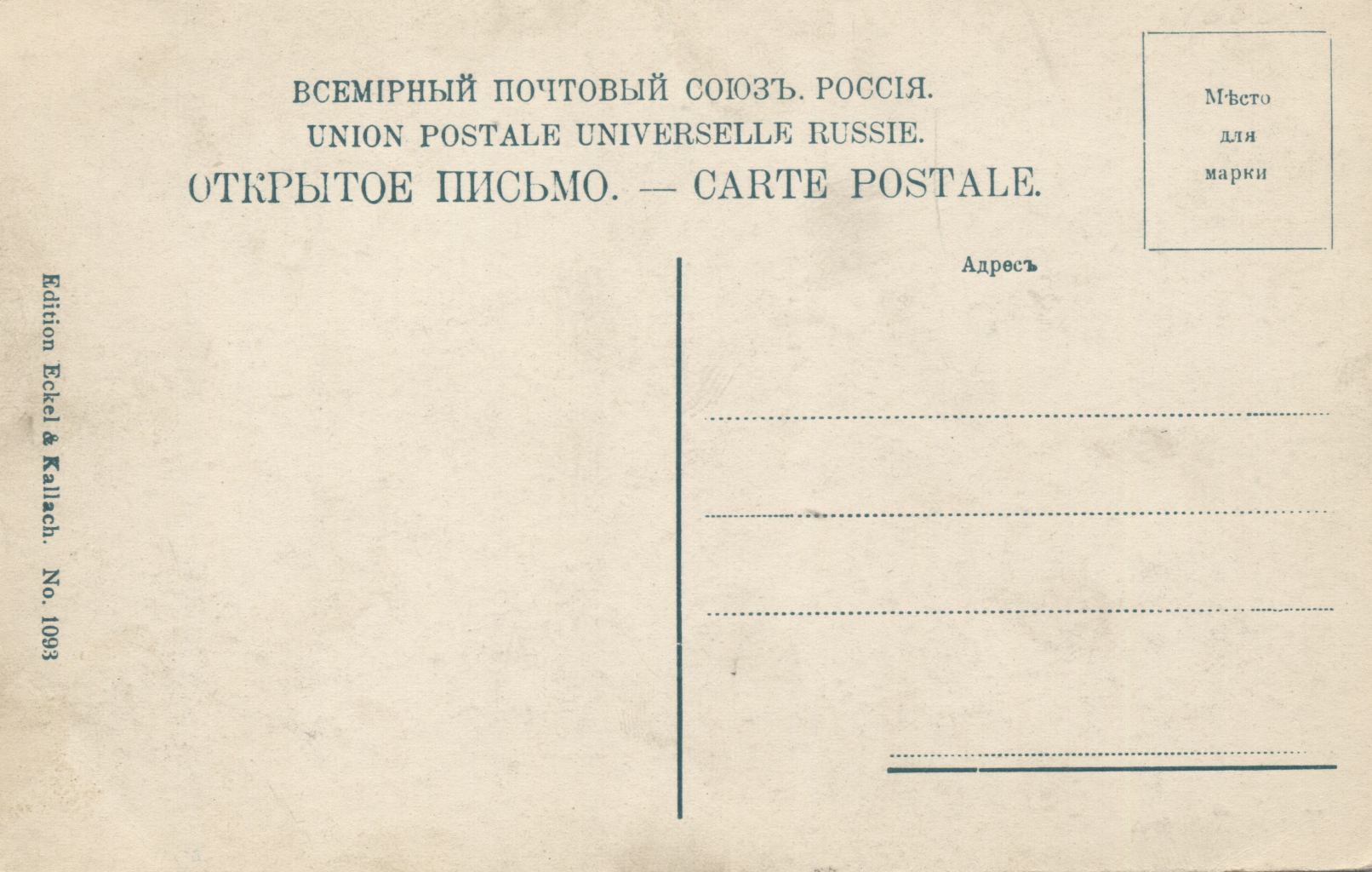 - Типы Крыма. Всемирный почтовый союз. Россия. Eckel and Kallach. №1093. Оборотная сторона