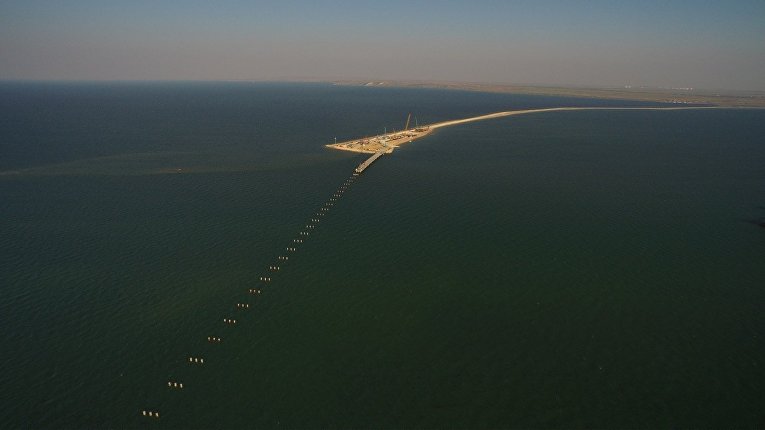 Между Таманью и Керчью строят временные рабочие мосты