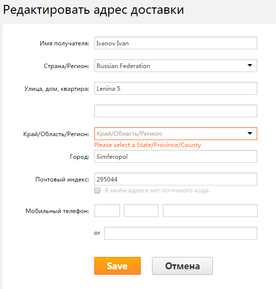 На сайте aliexpress.com обновилась форма «Адреса доставки». Раньше в графе «регион» необходимо было написать название региона, а теперь свой регион необходимо выбрать из списка. В этом списке нет ни Крымской Республики, ни Севастополя.