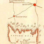 В связи с тем, что Симферополь с тех пор сильно разросся во все стороны, поиск нужно начать почти в пределах города, на левом берегу Салгира (ведь старые дороги, как и новые, тянулись вблизи реки).