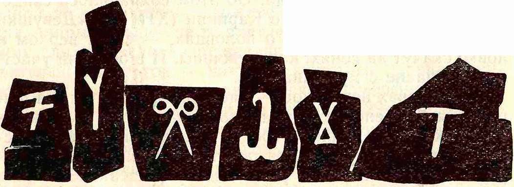 VIII. Варианты знака Фофорса (1—4) и близких по начертанию сарматских знаков (5—6).