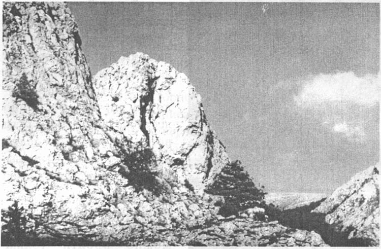 Утесы, камни целым потоком сбегают от него вниз к морю, и дорога вьется между этих живописных утесов, обегая их то справа, то слева. Деревеньки, виноградники, лесные участки в далекой глубине тоже лепятся между этим хаосом камней, который составляет характер местности. Это поколенье Фороса, которое он расплодил до самого моря, до тех красивеньких маленьких голышей, которыми шуршит береговой прибой. Вообще, может быть, ни в какой части Крымских гор нет такого хронического состояния разрушения, как в скалистых горах между Байдарскими воротами и Алупкой. Тут мы застаем геологические силы еще на месте преступления.