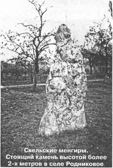 Уникальная природа долины дополняется многочисленными историко-археологическими памятниками. Особый интерес вызывают такие древнейшие памятники, как Скельские менгиры. Эти вкопанные в землю в третьем тысячелетии до нашей эры вертикальные камни находятся у села Родниковое (Скели). Эти загадочные камни установлены на одной линии с севера на юг и ориентированы так, что более плоскими сторонами обращены на запад и восток. Такая ориентация памятников, возможно, связана с определёнными религиозными представлениями. В настоящее время два из них ещё стоят. Прежде стояли 3 памятника, третий выкопан в 50-е годы и лежит неподалеку. Поэтому сейчас его нужно установить на прежнем месте.