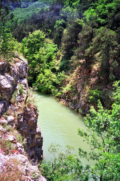 - Вид с горы Сары-Кая на юг. Внизу балка Янтык, «впадающая» вдали в Армутлукскую долину. Слева от неё — гора Коклюк, справа — лесистая гора Сарытлык. За ней вдали — гора Кабарга (Скалки). 2006 г.