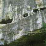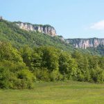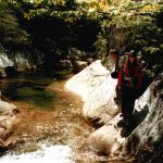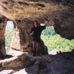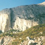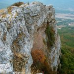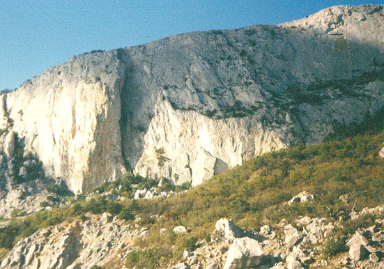 - Верхняя часть горы Эчки-Даг, вид с юга (висит переправа, проходит тур.слёт). «Выше, (за кадром) на левом склоне пещера Ухо Земли. Под висящим спортсменом проходит основная тропа от родника наверх.»