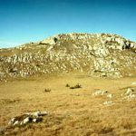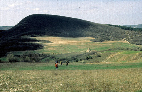 - Вид на г.Тепе-Кермен с севера, с г.Чуфут-Кале. Август, 2000 г.