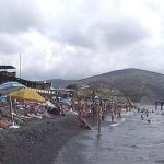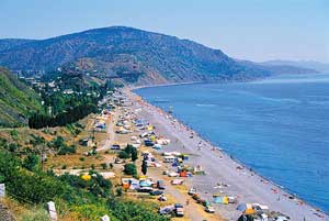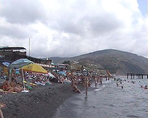 - Пляж в Рыбачьем. Вдали справа г.Янтуруз. Август, 2002 г.