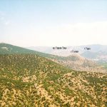 - Вид с горы Горданлы на юг. На самом краю снимка, слева — возможно, гора Яных-Дагын-Кара-Обасы. От нее правее и дальше, скалистая гора — возможно, Парсук-Кая. 28.6.2006 г.