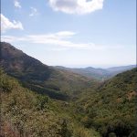 - Вид с г.Такья-Тепе на юго-восток. Через ущелье Хапхал — впереди восточные обрывы Демерджи-яйлы