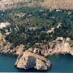 Ява, Пушкина скала — Небольшой скалистый мыс с плоской вершиной и отвесными обрывами к морю, у подножия которых Пушкинский грот. Примыкает с СВ к м. Футя в «Артеке» 2) по легенде, на нем любил бывать А.С. Пушкин; на известной картине И.К. Айвазовского поэт изображен стоящим на этой скале над бушующим морем.