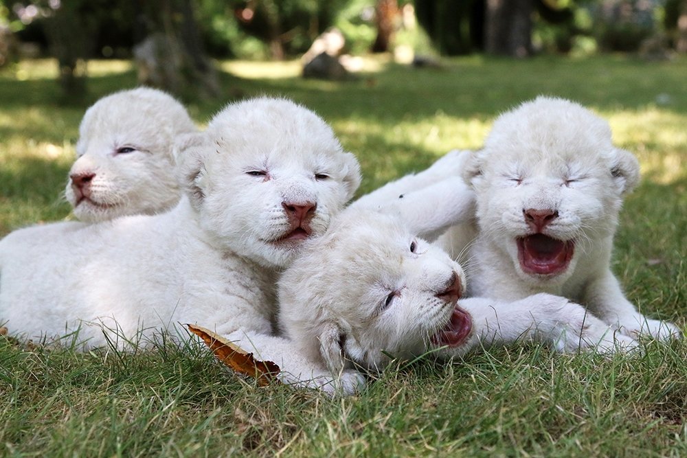 Четыре белых львенка родились в парке львов в Крыму