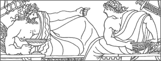 Ясон пошел со своими спутниками во дворец Эета. Там пригласил их царь Колхиды возлечь за пиршественный стол. Во время пира Аргос рассказал Эету о том, как потерпел он со своими братьями кораблекрушение, как выбросили их бурные волны на остров Аретиаду и как нашли их там, умирающих от голода, аргонавты. Сказал также Аргос, зачем приехал Ясон с героями в Колхиду. Едва услыхал Зет, что Ясон хочет добыть золотое руно, как гневом сверкнули его очи и грозно сдвинул он брови. Не верит Эет, что за золотым руном приплыли герои, он думает: уж не завладеть ли властью над всей Колхидой замыслили сыновья Фрикса и с той целью привели с собой греческих героев? Эет осыпает упреками Ясона, он хочет прогнать его ив дворца и грозит ему казнью. Готовы были уже слететь гневные речи с уст Теламона в ответ на угрозы царя, но Ясон остановил его. Он старается успокоить Эета, уверяет его, что лишь за руном приплыли они в Колхиду, и обещает царю сослужить любую службу, исполнить любое поручение, если в награду царь отдаст ему золотое руно. Задумался Эет. Наконец, решив погубить Ясона, он сказал ему: