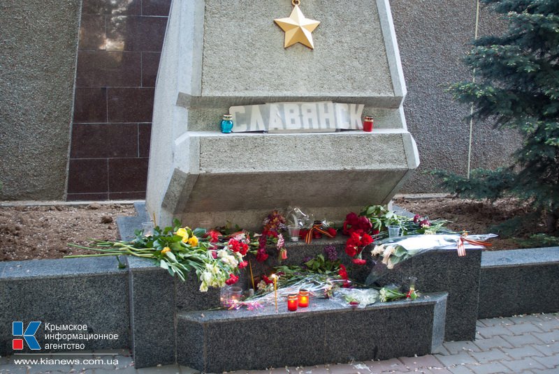 В Севастополе на аллее городов-героев 6 мая неизвестные заклеили стелу Киева надписью «Славянск».